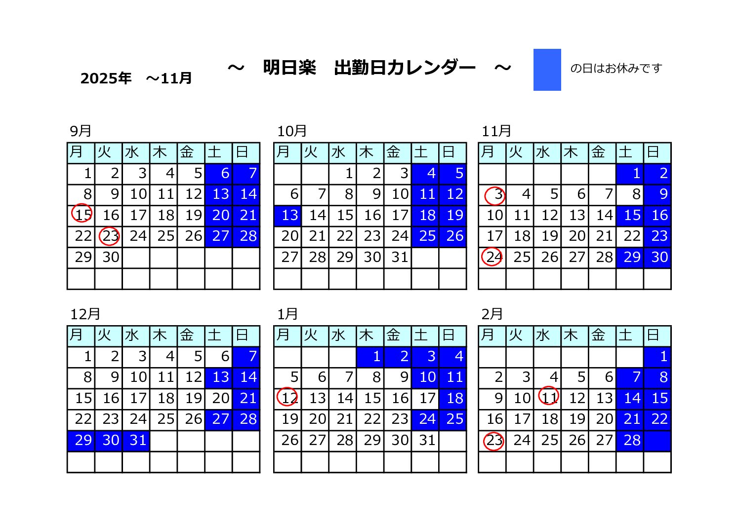 【お知らせ】には、来年2月までの会社カレンダーがアップされています!