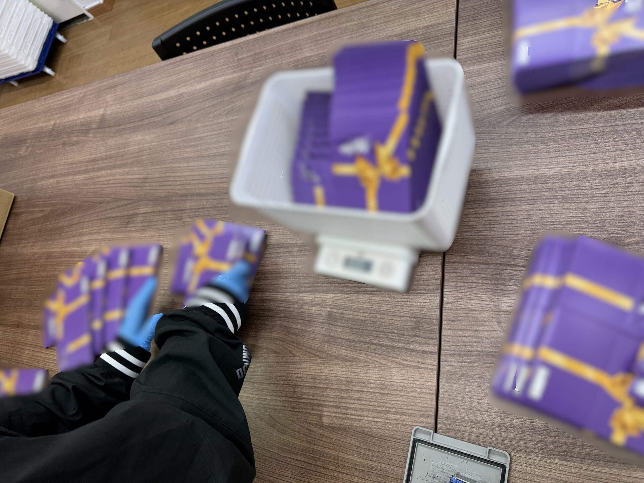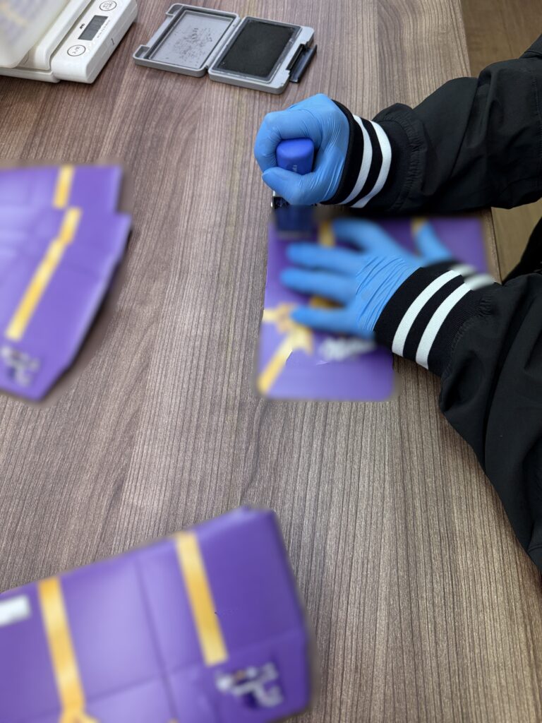 まず届いた商品に賞味期限のスタンプを押します♪