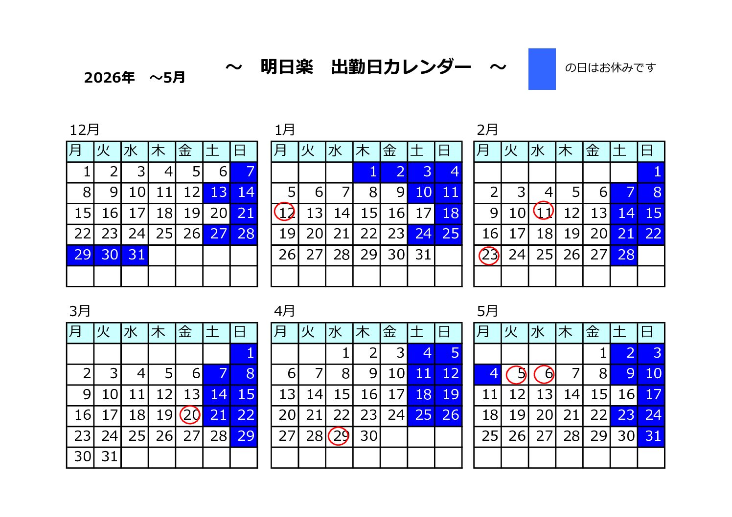 お知らせ 会社カレンダー更新しました🌟 2026.01.15 お知らせ 年末年始のお知らせ🌟 前の記事 新着のお知らせ 年末年始のお知らせ🌟 2025.12.26 【2025年12月】各事業所の空き情報 2025.12.02 【2025年10月】各事業所の空き情報 2025.10.07