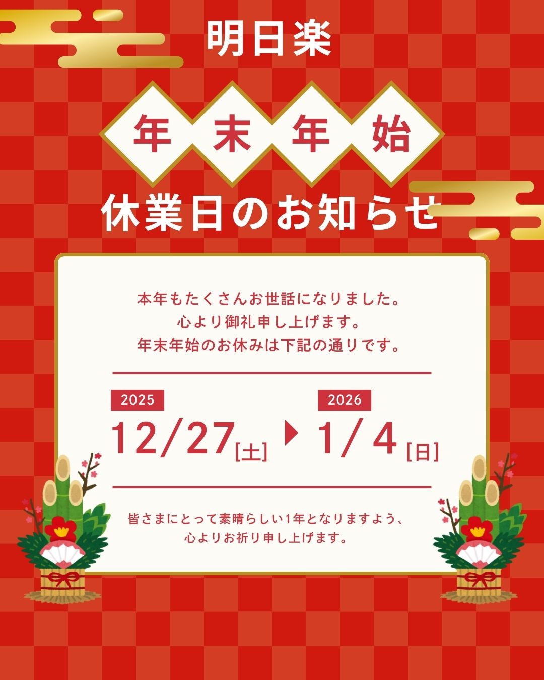 休業期間:2025年12月27日(土)~2026年1月4日(日)